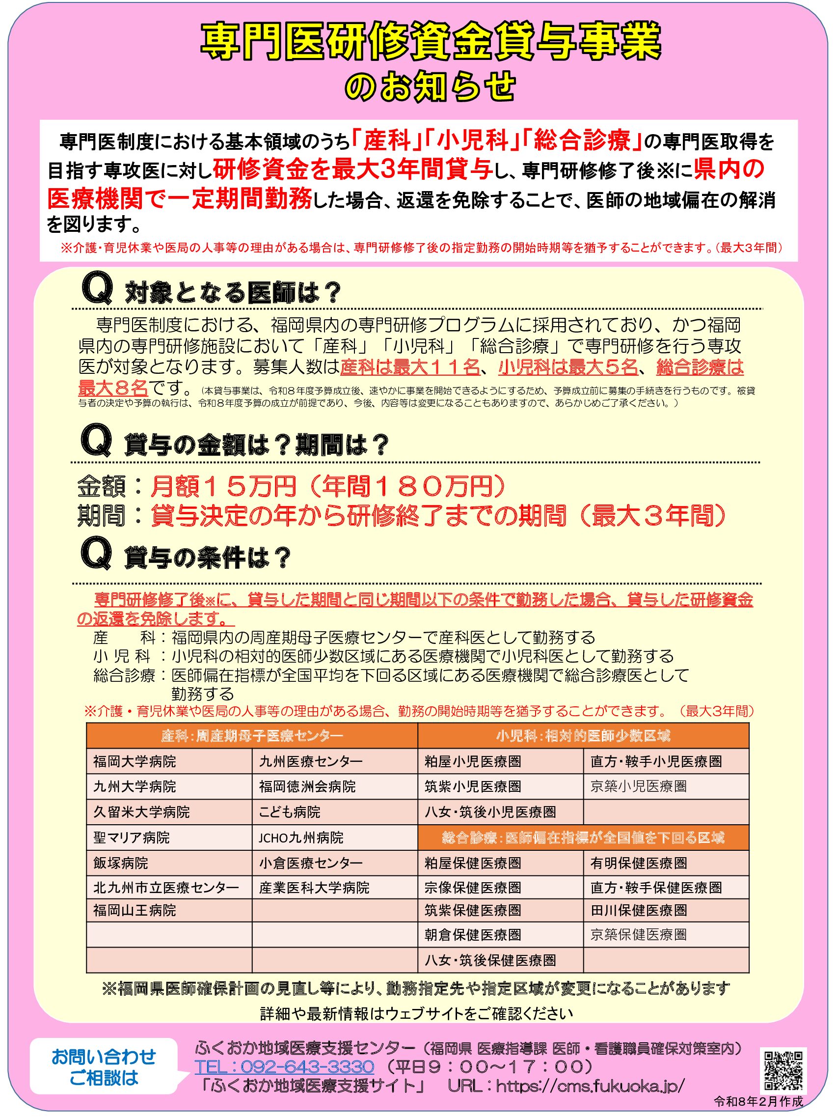専門医研修資金貸与事業の貸与者募集のお知らせ